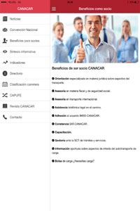 La aplicación es gratuita y está disponible para equipos iOS y Android. En ella los transportistas podrán encontrar información como los beneficios que ofrece la Cámara para sus socios, ya sea orientación, asesoría, asistencia telefónica, adhesión, constancias, capacitación, gestoría ante la Secretaría de Comunicaciones y Transportes (SCT) y bolsa de trabajo.