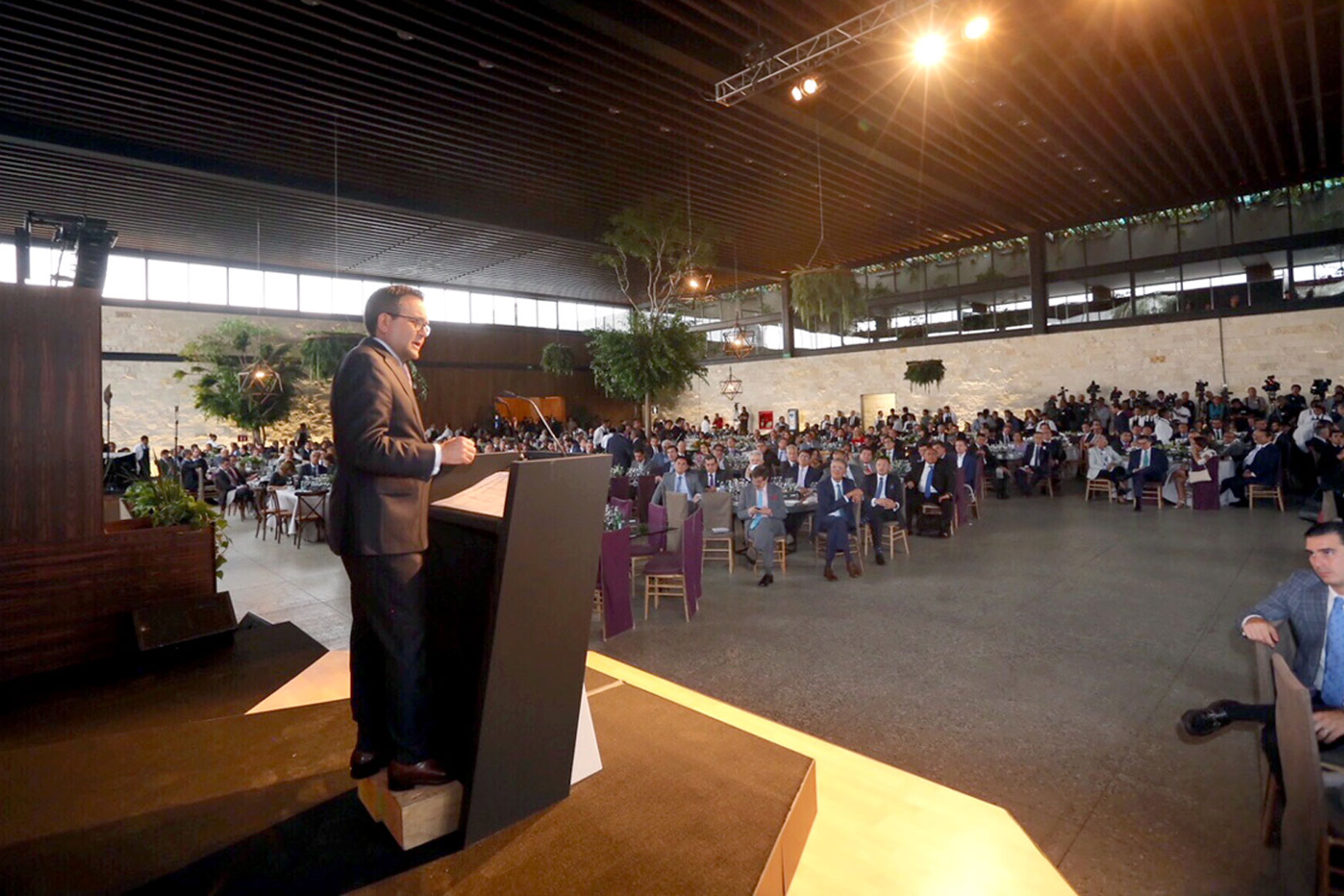 “Aunque hay un gran ánimo por el acuerdo logrado sabemos que es importante no caer en la autocomplacencia, hay que poner las cosas en su justa dimensión. El TLCAN es un factor importante en la competitividad de México y en la estabilidad de la economía, pero no es el único, en esta coyuntura más que nunca tenemos que redoblar esfuerzos para consolidar todas las fortalezas de México y para ratificar ante el mundo que nuestro país continuará siendo una plataforma altamente competitiva para invertir, producir y exportar. La sinergia de los liderazgos técnicos y políticos que se han dado en esta negociación del TLCAN no debe ser algo extraordinario, debe repetirse todos los días, en todos los ámbitos del país, sin duda, esta tarea empieza aquí con los 300 líderes, en una democracia moderna, abierta, como la nuestra, el liderazgo de estado somos todos”, finalizó.