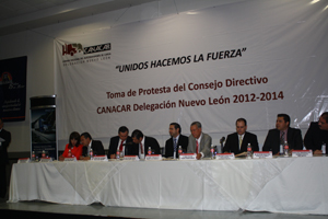 Anterior a la inauguración de ExpoProveedores 2012, la exhibición de tractocamiones, equipos, refacciones, accesorios y servicios para la industria del transporte de carga y pasaje en Cintermex, se llevo a cabo la Toma de Protesta del Nuevo Consejo de la Delegación Nuevo León de la Cámara Nacional del Autotransporte de Carga (Canacar)
