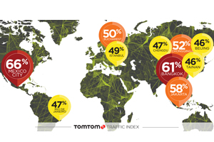TomTom (TOM2) publicó los resultados del TomTom Traffic Index 2017, el informe anual que detalla las ciudades con la mayor congestión de tráfico en el mundo. La Ciudad de México repite en el primer lugar un año más y se incrementó hasta el 66% el tiempo de viaje adicional que los conductores pasan atrapados en el tráfico a cualquier hora del día (un 7% más que el año pasado) y hasta un 101% durante las horas pico de la tarde frente a una situación de flujo libre o sin congestión.