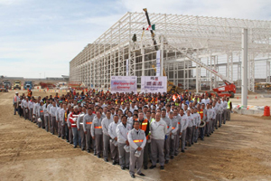 Para llegar a este momento, 1,100 personas han laborado arduamente, quienes lograron el record de 500,000 horas-hombre sin accidente. Por otro lado, a la fecha se tiene un avance de colocación del techo de estos edificio del 61%, considerando que los edificios de Estampado, Pintura y Defensas están muy próximos a ser concluidos.