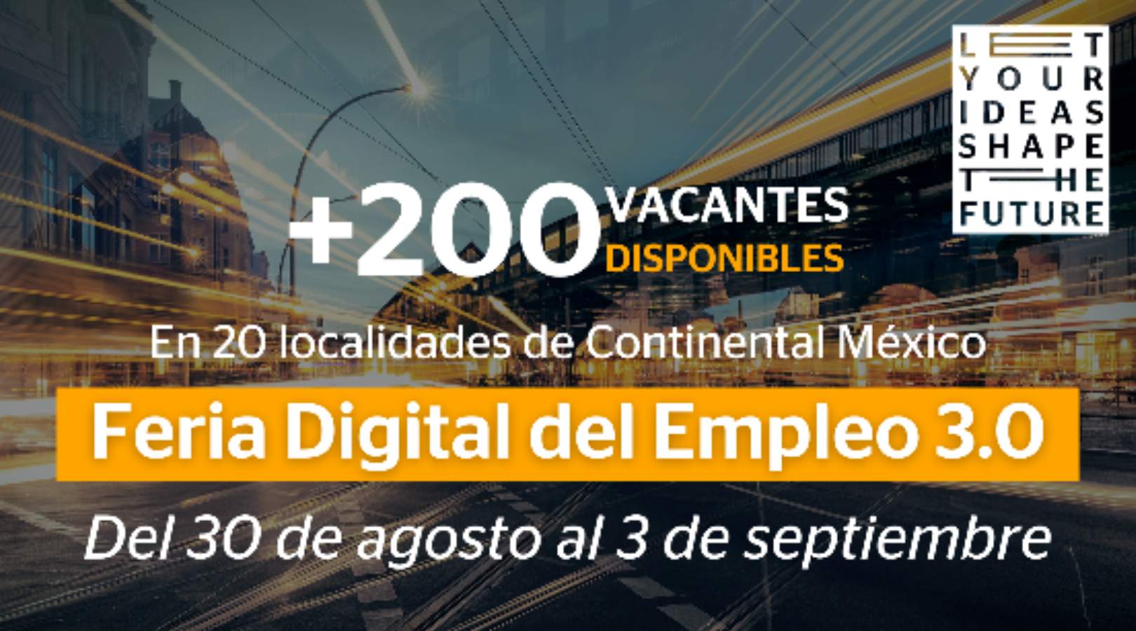 Continental México ofrece al talento mexicano más de 200 vacantes disponibles en 20 localidades en la tercera edición de la Feria Digital de Empleo, en sus diferentes áreas de negocio en nuestro país: Continental Automotive, Continental Tire, Continental R&D y ContiTech.