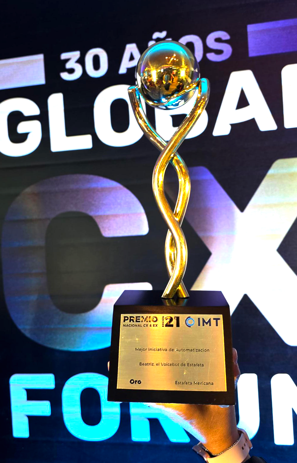 El día de ayer tuvo lugar la entrega del Premio Nacional CX & EX, organizado por el Instituto Mexicano de Teleservicios (IMT), Estafeta fue galardonada con el Premio Oro en la categoría de “Mejor iniciativa de automatización”. Este certamen, que contó con la participación de 150 casos inscritos y la evaluación de 97 miembros del jurado, reconoció el desarrollo e implementación de Beatriz, el asistente de voz con inteligencia artificial de la empresa.