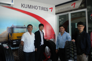 A la ceremonia de inauguración y presentación de la nueva línea de llantas para camión de Kumho Tire, un neumático de tecnología surcoreana asistieron el Director General de Kumho México, T.Y. Kim; el Director de Servicio y Calidad de Kumho México, K. S. Kim; el Coordinador de Mercadotecnia de Kumho México, Sergio González; y el Director Comercial de Avante, Norte-Sureste, Christian A. Arellano, coordinador en la Península de Grupo Avante.