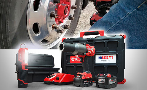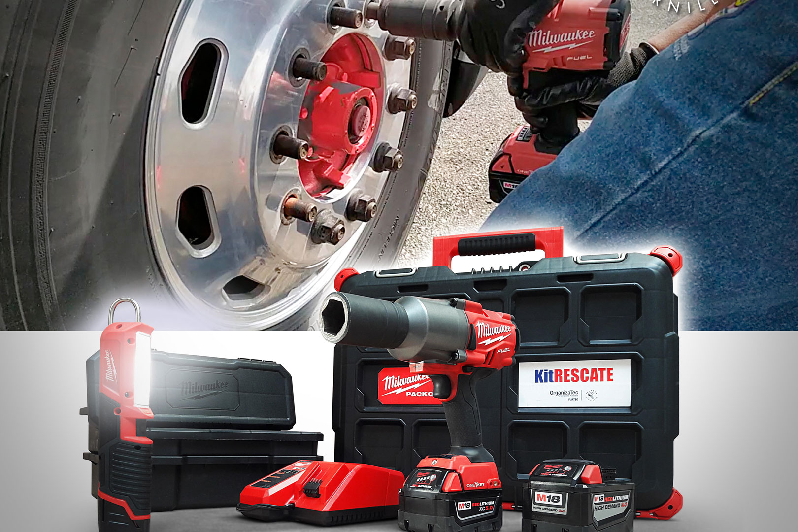 La integración de herramientas por parte de la FIJATEC ha permitido presentar en un kit de rescate una llave de impacto de alto torque de marca Milwaukee diseñada para trabajos muy demandantes, la cual posee baterías Extended Capacity y High Demand con tecnología REDLITHIUM, lo que le permite realizar la tarea de manera más independiente de remover con facilidad las tuercas de un tractocamión, camión o autobús en el momento que se presente el imprevisto.