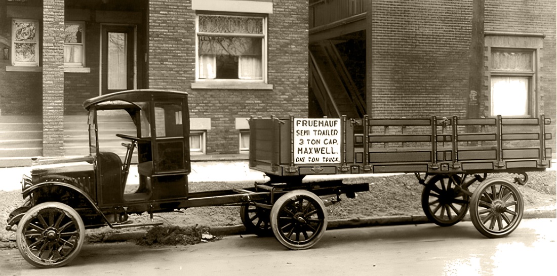 Fruehauf junto con Otto Neumman, su antiguo colaborador, desarrollaron el concepto inicial, se instaló una bandeja con laterales en la parte trasera del auto para poder transportarlo con todo y sus accesorios de forma segura. En la parte delantera del remolque instalan el primer king pin especial.  Partiendo de la idea “un caballo puede tirar más de lo que puede cargar”, nació el primer conjunto de tractor y semirremolque articulado. Este invento marcó el inicio de lo que hoy conocemos como el transporte de carga.