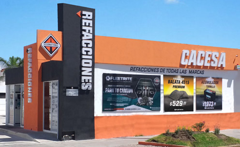 La sucursal está ubicada en avenida Aguascalientes Sur no. 808, colonia Jardines de las Fuentes, Aguascalientes, Ags., y en su inventario cuenta con refacciones de las marcas más representativas del mercado como Fleetrite, Cummins Alesso, Grote, Bendix, Meritor, Saf Holland e Idealease, entre otras.