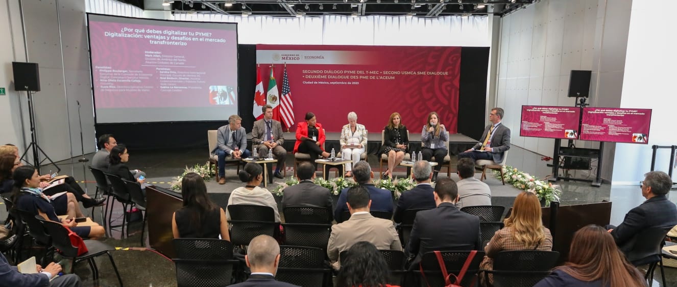 Como parte de las actividades del Diálogo, se llevó a cabo un panel magistral en el que mujeres líderes de MIPYMES de los tres países compartieron sus experiencias para comercializar en la región América del Norte. Además, se celebraron tres paneles temáticos, en los que se intercambiaron desafíos, oportunidades, soluciones y aprendizajes sobre “Digitalización: ventajas y desafíos en el mercado transfronterizo”, “Esfuerzos en los sectores público y privado para la inclusión financiera de las MIPYMES” y “Procesos y procedimientos para exportar dentro de la región T-MEC”.