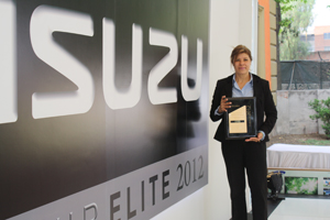 Con un total de 42 camiones vendidos en 2012, Elizabeth Aguilar se llevó los máximos honores como la mejor consultora de toda la red de distribuidores Isuzu en el país, con más de tres unidades por mes en promedio para recibir la categoría Oro. En años anteriores ya había recibo los reconocimientos Plata y Bronce que otorga la marca japonesa.