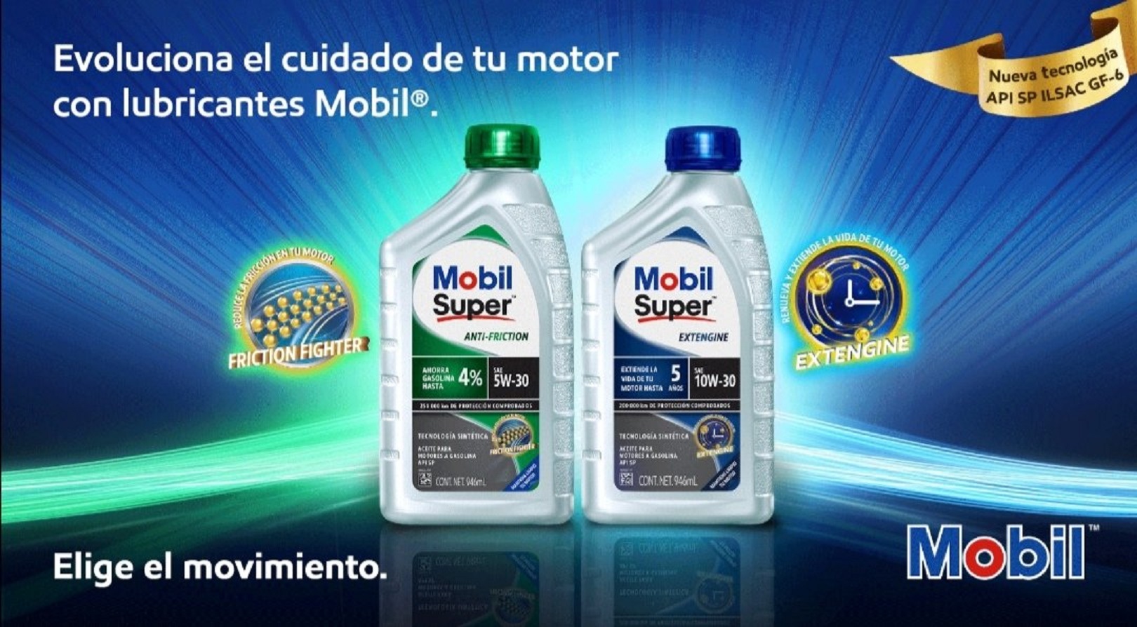 • Mobil Super Extengine. Con tecnología sintética y especificación API SP e ILSAC GF-6 evoluciona para proteger a los motores hasta por 200 mil kilómetros y extender su vida hasta por cinco años. Las moléculas Extengine se adaptan al calor y recubren espacios críticos del motor, reduciendo la fricción entre ellos y permitiendo que el desgaste sea menor.