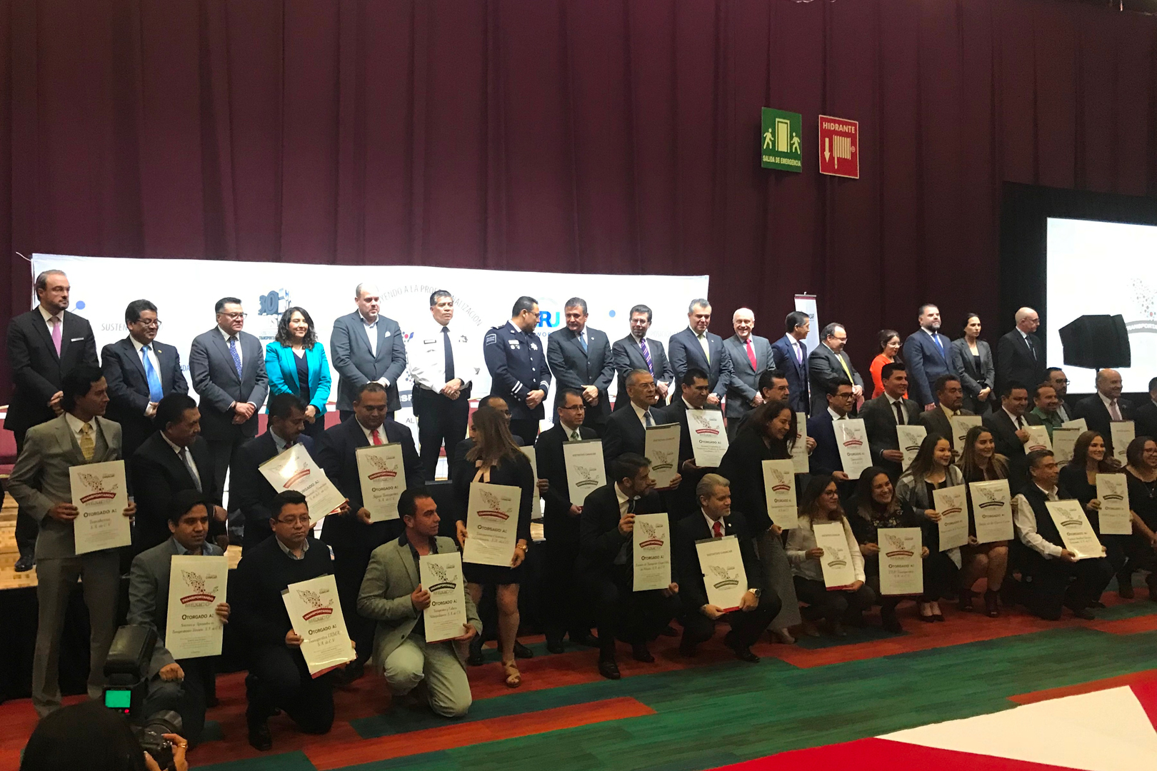 Durante el mismo, se realizó la entrega del Distintivo Canacar “Transportando al País, Transportando a México”, a empresas de autotransporte de todas regiones del país. Muñoz López detalló que en los tres años de la vida del distintivo, 509 empresas han participado en el programa.