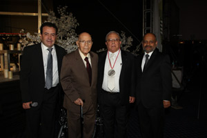 Guillermo Prieto Treviño, actual presidente ejecutivo y Emilio Sánchez, ex presidente de la Asociación Mexicana de Distribuidores de Automotores (AMDA), entregaron la Medalla al Mérito 2016 a Alejandro Gurza Obregón, Eduardo Solana Font y Manuel Garrido Mejía durante la cena del cierre de actividades del Foro Automotor AMDA 2016.