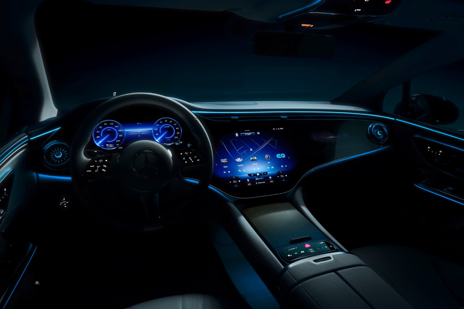 - IN CAR: Ilustra cosas como el sistema multimedia MBUX con inteligencia artificial y la nueva Hyperscreen MBUX.