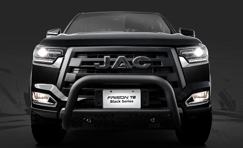 Después del éxito obtenido con JAC Sei4 Black Series, la marca comercializada en México y ensamblada en Ciudad Sahagún Hidalgo, anuncia la comercialización de Frison T8 Black Series, la pickup que se convierte en el segundo modelo perteneciente a la línea de ediciones especiales Black Series. Al igual que el modelo anterior, esta camioneta estará disponible con 8 unidades para venta únicamente en línea en www.jac.mx, con un precio de $499,000 pesos.