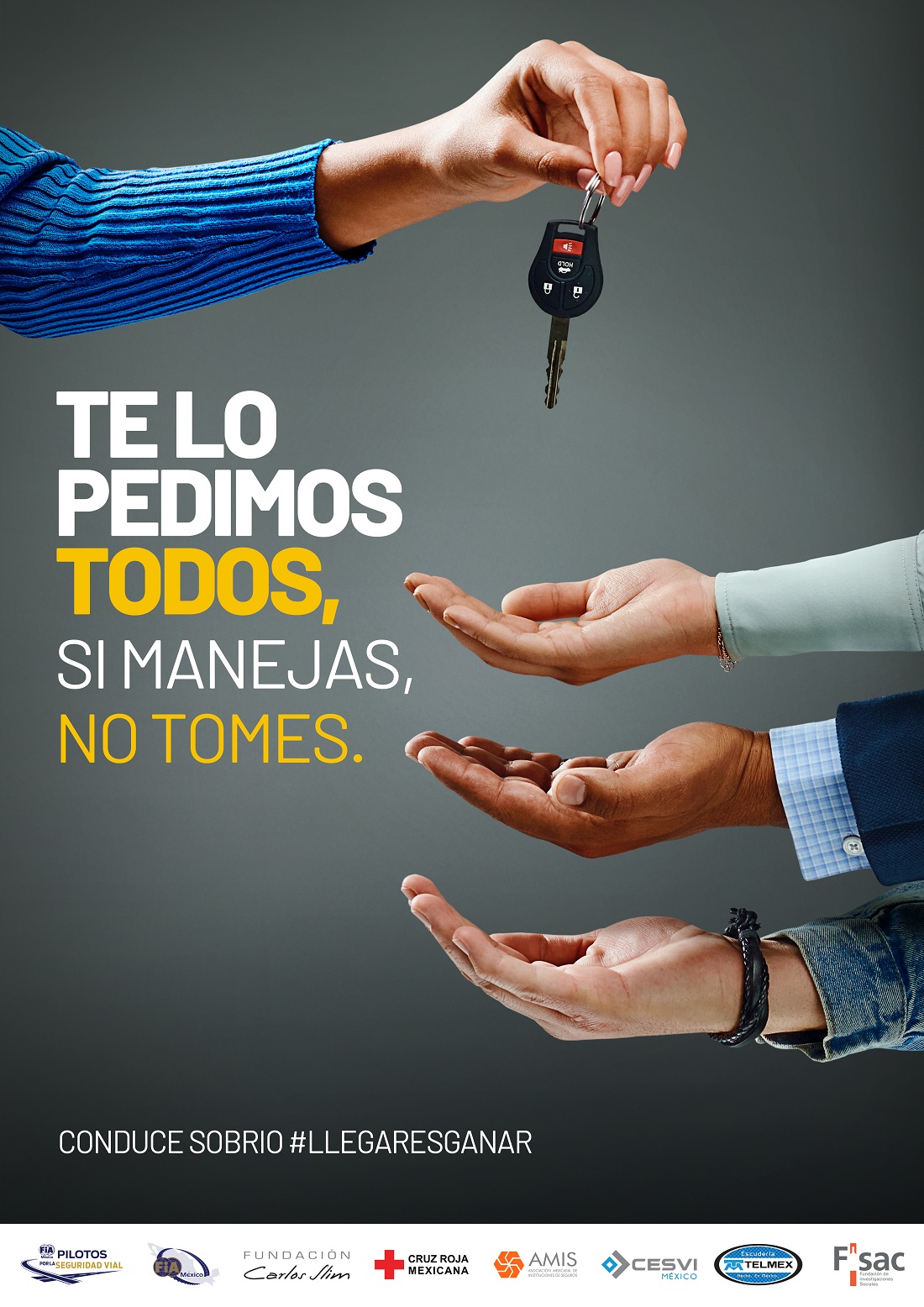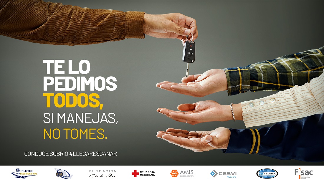 Esta campaña busca llegar a la conciencia colectiva desde dos frentes: el primero de ellos es un enfoque “toda sociedad”, pues todos podemos dar o recibir unas llaves para que alguien cercano a nosotros no conduzca cuando ha bebido y siempre podemos decidir #SiManejasNoTomes. El segundo es la voz experta de la conducción, los Pilotos Mexicanos del Automovilismo de talla Internacional Miji Dörrbecker y Pancho Name que refuerzan la prevención para conciencia colectiva #ConduceSobrio.