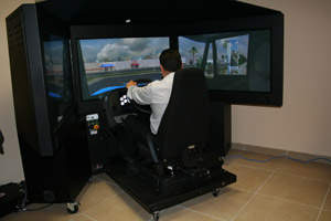 Entre las innovaciones tecnológicas del Centro se encuentra un simulador de manejo con tres pantallas y un asiento con movimiento en los tres ejes, lo que permite recrear situaciones cotidianas de operación, por ejemplo, el estallido de una llanta.