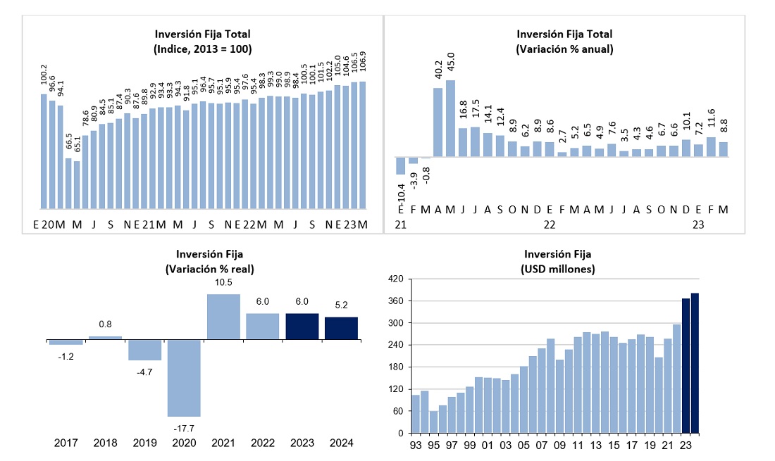 «La inversión creció 8.8% anual en marzo, una tasa aún muy importante que permitió un ritmo de 9.2% anual en el primer trimestre del año. Veremos una moderación en su ritmo para los siguientes tres trimestres, hasta solo 1.7% en el cuarto, en línea con la desaceleración en Estados Unidos y México.