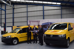 Los nuevos vehículos Volkswagen, con los que se conforma parte de la flotilla 2015 de DHL Express México, está integrada por 119 Caddy Maxi, 43 Transporter AT, 23 Crafter Cargo Van y una unidad Crafter Chasis, unidades configuradas especialmente para cumplir con los requerimientos de transportación terrestre en el sector logístico.