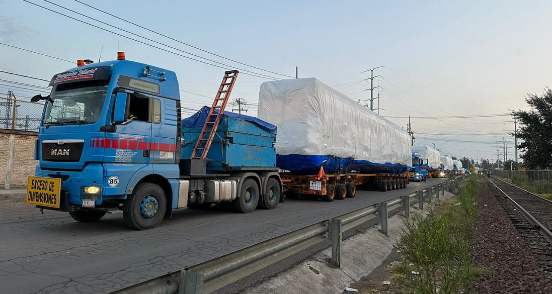 El conjunto de vagones construidos en la planta Alstom, ubicada en Ciudad Sahagún, Hidalgo, son trasladados en coordinación con la Secretaría de la Defensa Nacional (SEDENA), el Fondo Nacional de Fomento al Turismo (FONATUR) y la Guardia Nacional (GN).